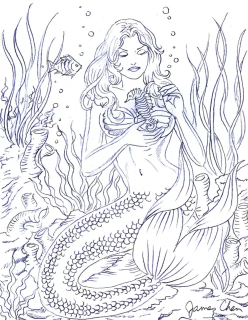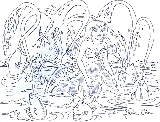 8 The Little Sirmaid Princesse Ariel Original Crayon Comique Art Par James Chen Eur 73 11 Picclick Fr